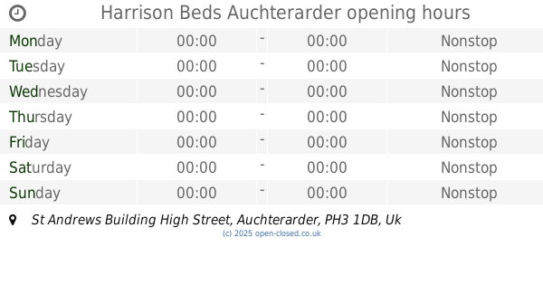 It is also possible to : Edit these OPENING HOURS of Store Harrison Beds In Auchterarder, St Andrews Building High Street,